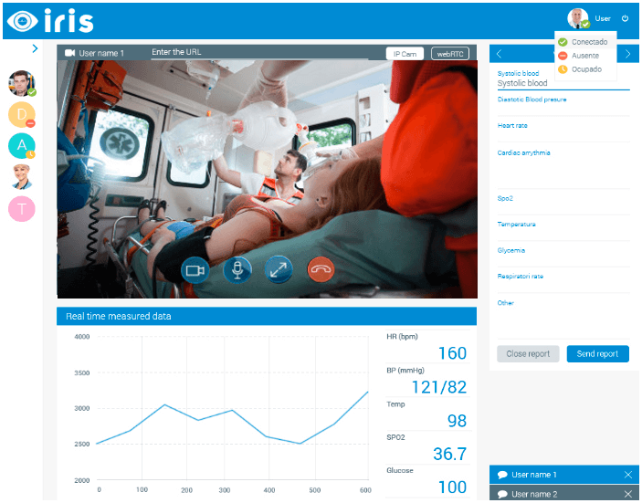 Quobis and Zebra Academy are working together in a R&D project that allows remote access and improved Healthcare from everywhere. The main objective is to develop an open source and secure ICT platform for interoperable collection and communication of wireless 3G/4G audio-video data and point-of-care device data, across hospitals, emergency vehicles and patient portals at home. Zebra Academy is using WebRTC-based Sippo solutions to allow web applications to control user’s microphone and video camera from the browser. This helps to put in contact patients and doctors just by using a web browser. The communication capabilities include video, audio, and data transmission without the need of any software installation on the user devices. There are different call profiles including one starting from an ambulance to a doctor at the hospital, that represents the first implementation of WebRTC in a onboarding health-care environment. The video displayed comes from an IP cam located in the ambulance. Here, the doctor is able to get live information from the medical device provided by Vrije Universiteit Brussel (V-Trust and separate blood pressure, glycemic and SPO2) that the caregiver is using to measure some vitals from the patient. Those devices are Bluetooth-paired to the PC and the data are sent via Datachannel.